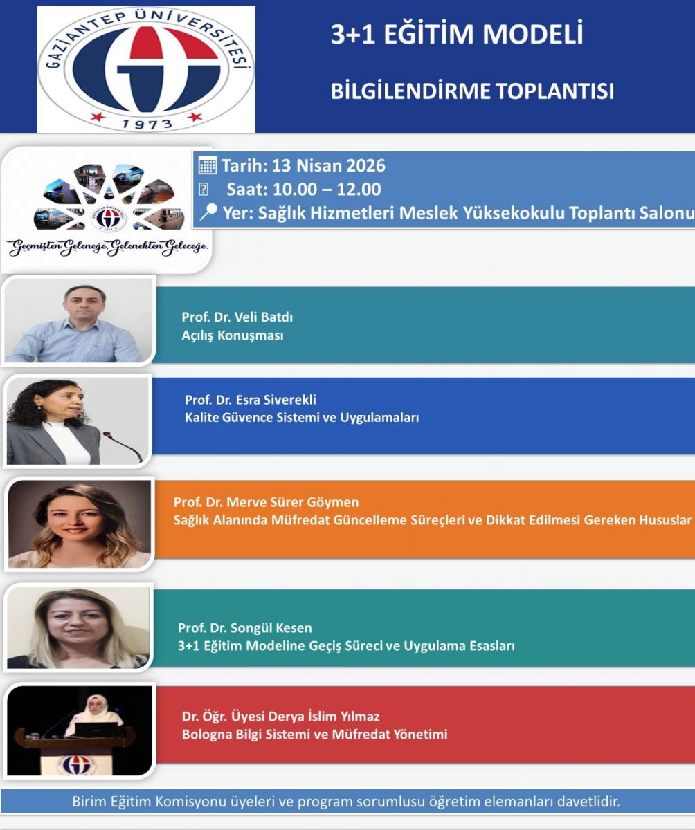 Gaziantep Üniversitesi Sağlık Hizmetleri Meslek Yüksekokulu’nda 13 Nisan 2026 tarihinde gerçekleştirilen akademik toplantıda, yükseköğretimde kalite güvencesi, program yeterlilikleri, öğrenme çıktıları ve müfredat güncelleme süreçleri bütüncül bir yaklaşımla ele alındı. Alanında uzman akademisyenler tarafından sunulan içeriklerde, sağlık eğitiminin güncel ihtiyaçlara nasıl uyum sağlayabileceği ve eğitim programlarının nasıl daha nitelikli hale getirilebileceği kapsamlı biçimde tartışıldı.