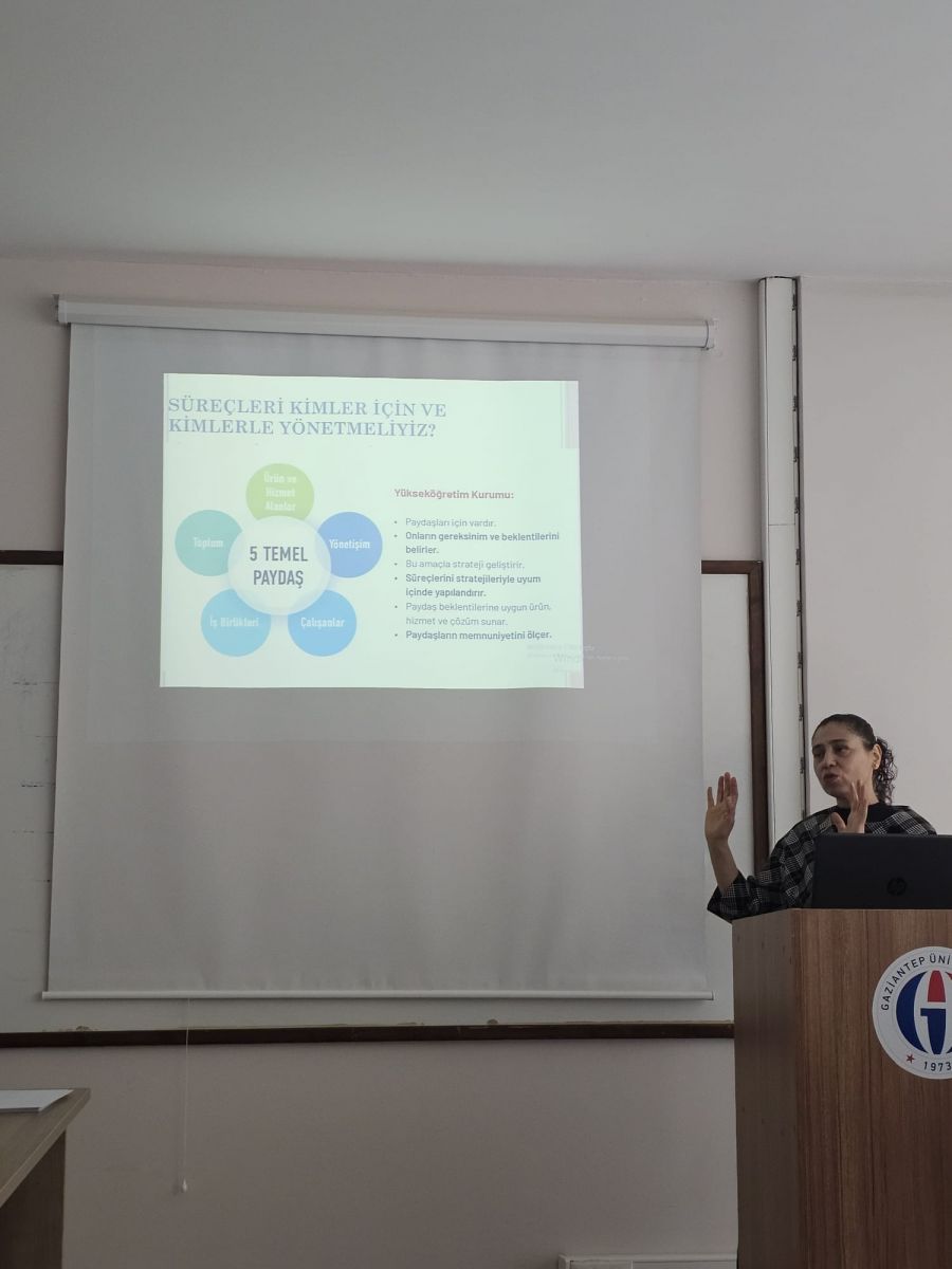Özellikle çıktı temelli eğitim (OBE) yaklaşımının ön plana çıkarıldığı sunumda, “Program Çıktıları – Ders Öğrenme Çıktıları – Ölçme ve Değerlendirme” uyumunun sağlanmasının kalite güvencesinin temelini oluşturduğu belirtildi. TYYÇ ve Bologna Süreci kriterleri doğrultusunda geliştirilen müfredatların; yetkinlik temelli, öğrenci merkezli ve kanıta dayalı bir yapıda olması gerektiği vurgulandı. Ayrıca PUKÖ (Planla-Uygula-Kontrol Et-Önlem Al) döngüsü ile eğitim süreçlerinin sürekli izlenmesi ve iyileştirilmesi gerektiği ifade edildi.
