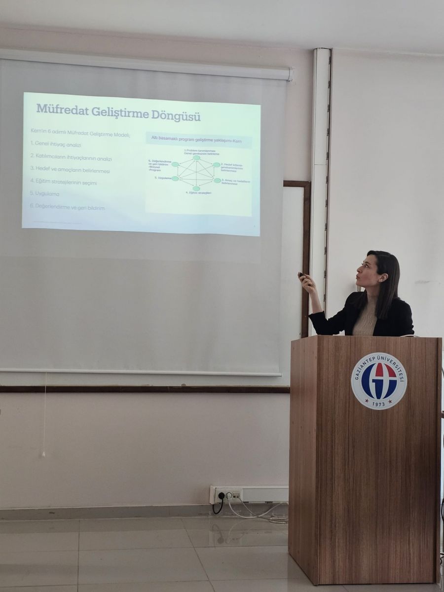 Toplantıda ayrıca Prof. Dr. Merve Göymen tarafından hazırlanan “Sağlık Alanında Müfredat Güncelleme Süreçleri” başlıklı sunum da paylaşıldı. Sunumda, sağlık eğitiminin değişen teknoloji, farklılaşan hasta profilleri ve akreditasyon gereklilikleri doğrultusunda sürekli güncellenmesi gerektiği vurgulandı. Bu süreçte Kern’in 6 Adımlı Müfredat Geliştirme Modeli temel alınarak; problem tanımlama, hedef kitlenin gereksinimlerinin belirlenmesi, amaç ve hedeflerin oluşturulması, uygun eğitim stratejilerinin seçimi, uygulama ve değerlendirme aşamalarının sistematik bir bütünlük içinde yürütülmesi gerektiği ifade edildi.